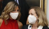 La vicepresidenta primera y ministra de Asuntos Económicos, Nadia Calviño (d); y la vicepresidenta segunda del Gobierno y ministra de Trabajo, Yolanda Díaz La Comisión Europea calcula que la economía española...
