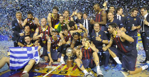 El Barcelona se llevó el título de Liga en uno de los partidos más extraños que se recuerdan. Fue bronco, lleno de roces, con tres árbitros desbordados, Laso expulsado por protestar, con una superioridad azulgrana...
