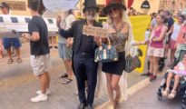 Dos de los asistentes, realizando una ‘performance’ sobre el turismo de lujo. Entre los miles de participantes en la manifestación que recorrió las calles de Palma en la tarde de este domingo bajo...