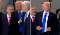 Donald Trump empuja al primer ministro de Montenegro en una reunión de la OTAN