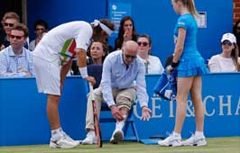 Nalbandian, descalificado de la final de Queen’s por dar una patada a una placa que impactó en el juez de silla