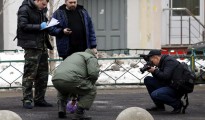 Varios agentes de la policía rusa inspeccionan la zona junto a la estación de metro de “Oktiabrskoye Pole” donde una mujer fue detenida el lunes tras pasearse con una cabeza decapitada en la mano,...