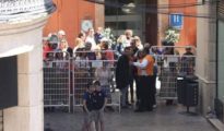 Un grupo de personas, apartadas de las calles por las que pasan los tronos cofrades mediante unas vallas. ED.- El tiempo acompaña estos días de Semana Santa (casi todos) pero el chaparrón cae por otro sitio en...