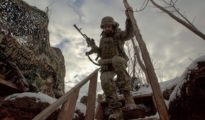 Un miembro del servicio de las fuerzas armadas de Ucrania camina en posiciones de combate cerca de la frontera con Rusia. Las tensiones en torno a Ucrania aumentaron este lunes en varios grados después de que Washington...