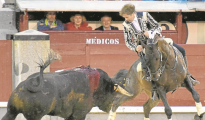 Pablo Hermoso de Mendoza cuajó una gran faena al manso cuarto Media hora antes del comienzo del festejo, cae una tromba de agua. Se retrasa la corrida unos minutos, para reparar el ruedo. Vuelve a diluviar a partir...