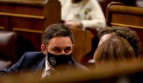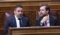 El líder de Vox, Santiago Abascal, y el portavoz de Vox en el Congreso, Iván Espinosa de los Monteros. Vox ha exigido este jueves el cese de la secretaria de Estado de Igualdad, Ángela Rodríguez ‘Pam’,...