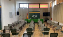 Salón vacío de la sede de Vox en Málaga momentos antes del acto que el partido convocó durante la conferencia de Macarena Olona Las diferencias entre Vox y Macarena Olona que motivaron la marcha de ésta...
